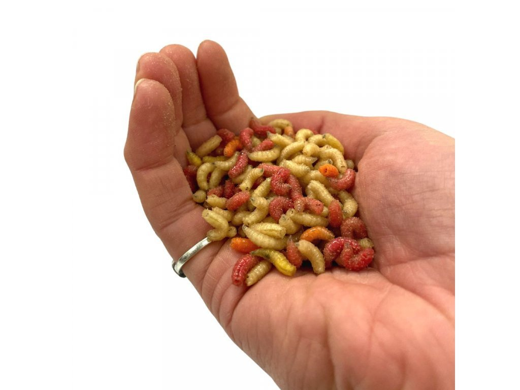 Přestože se tvrdí , že ryba je barvoslepá, z praxe víme, že ryby v průběhu lovu reagují na barvy. Proto tito různobarevní červi barvení přírodními barvivy mají velký význam zejména při závodním rybolovu na plavanou a feeder. stejně tak jako bílé červy je můžete je přimíchat přímo do vnadící směsi, můžete je lepit, cpát do krmítek nebo je spařovat, mrazit, topit či dipovat.