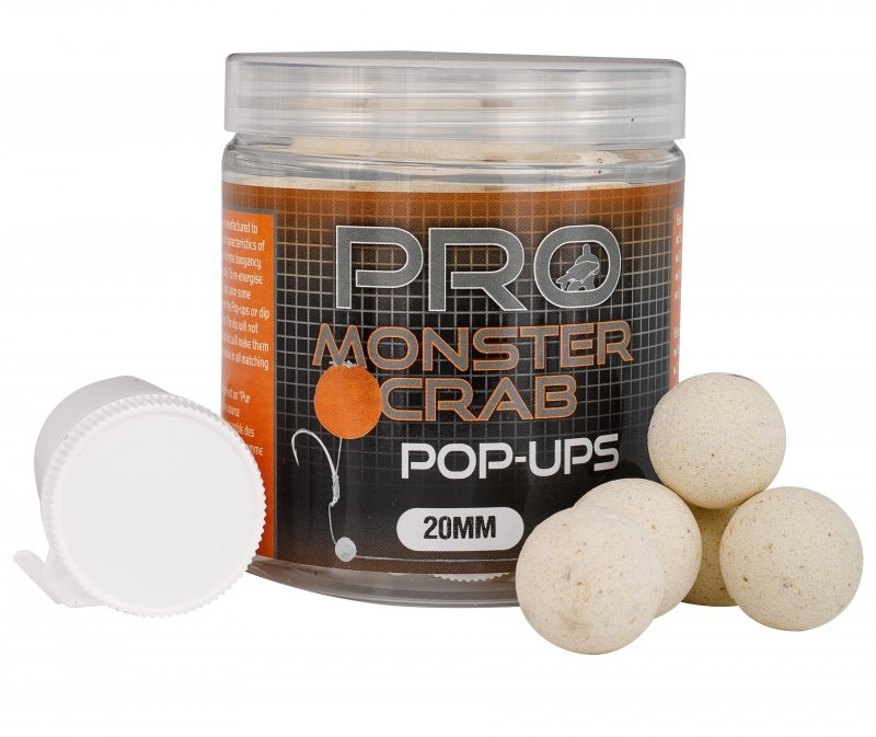 Pro Monster Crab (krab) je dalším členem úspěšných nástrah z řady Probiotic. Je to nutričně bohatá nástraha lehce rozpoznatelná kaprem jako zdroj potravy. Stejně jako ostatní boilies a komponenty je i Pro Monster Crab plný přírodních ingrediencí a derivátů jako jsou kvasinky, betain, extrakt z jater, minerály, oleje, které jsou pro kapry přirozené a potřebné pro jejich výživu. Je postaven především na bázi speciálních rybích mouček a výtažků z kraba. Díky tomuto složení se Pro Monster Crab stává pro kapry neodolatelným soustem. Komponenty pro výrobu tohoto boilies jsou vybírány velmi pečlivě z těch nejkvalitnějších surovin. Správná kombinace všech složek s komplexem tekutých atraktantů přispívá k rychlému přilákání kaprů. Díky jeho složení je toto boilie vhodné i na dlouhodobé krmné kampaně a výpravy. Při testování se ukázalo, že se jedná o selektivní nástrahu pro opravdu velké kapry.